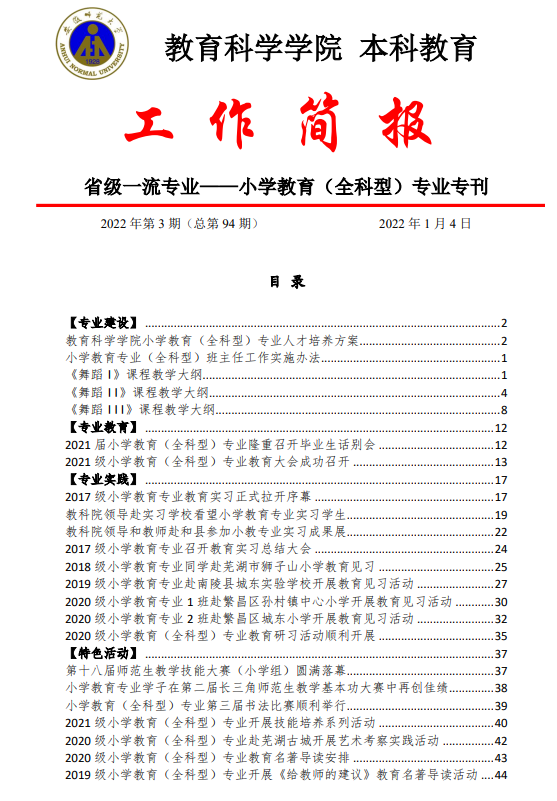 教育科学学院本科教育工作简报(第94期)小学教育专业专刊
