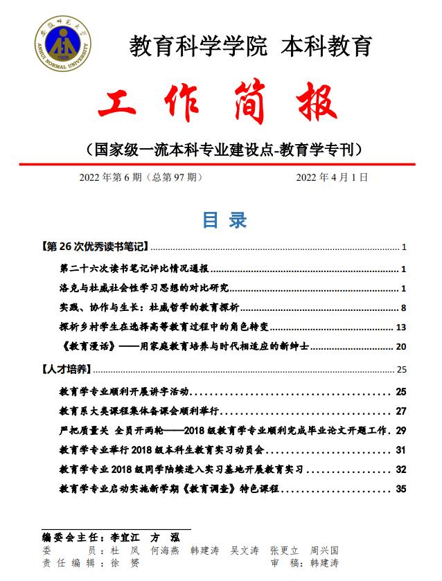 教育科学学院本科教育工作简报(第97期)教育学专业专刊