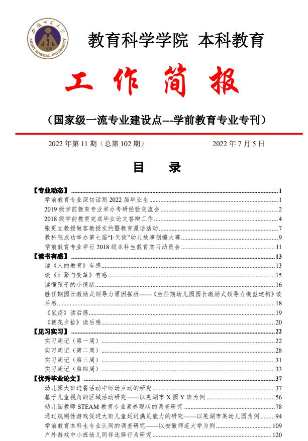 教育科学学院本科教育工作简报(第102期)学前教育专业专刊