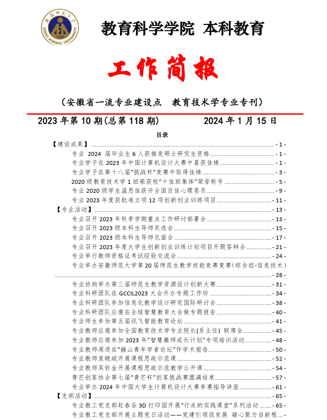 教育科学学院本科教育工作简报(第118期)教育技术学专业专刊