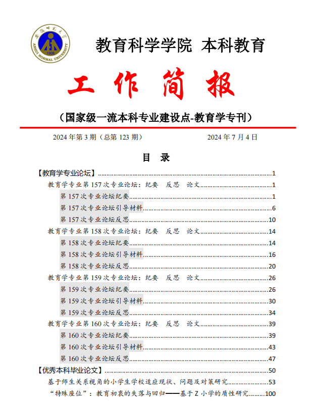 教育科学学院本科教育工作简报(第123期)教育学专业专刊