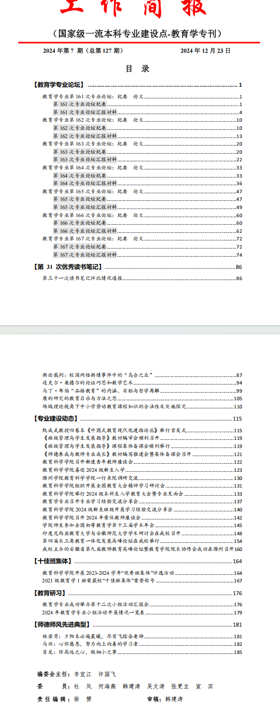 教育科学学院本科教育工作简报(第127期)教育学专刊