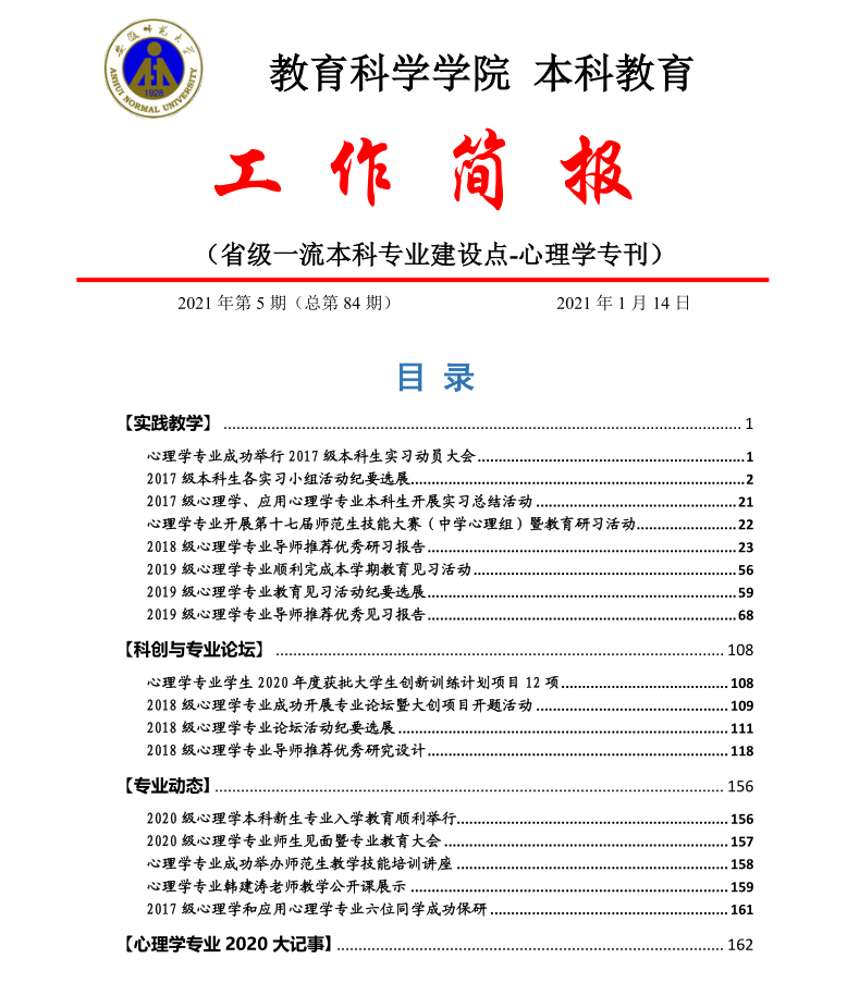 教育科学学院本科教育工作简报(第84期)心理学专刊