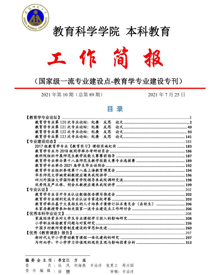 教育科学学院本科教育工作简报(第89期)教育学专业专刊