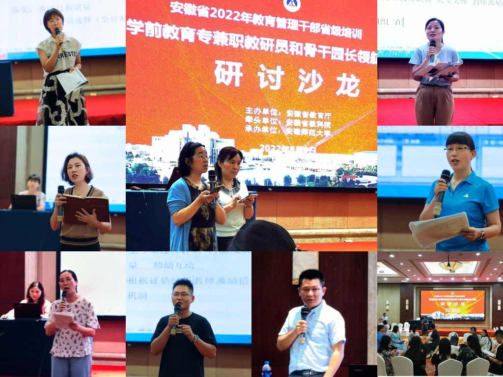 (本网讯)学术交流硕果香,齐聚江城不虚行。2022年8月6日至11日,由安徽省教育厅主办,安徽省教育科学研究院牵头,安徽师范大学承办的“2022年安徽省学前教育专兼职教研员和骨干园长领航培训”在芜湖成功举行。来自全省15个地市2个直管县(市)共100名学员参加此次培训。