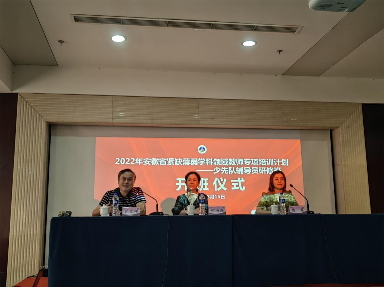 (本网讯)8月15日上午,安徽省2022年乡村学校少先队辅导员研修培训在芜湖开班,安徽royal皇家88平台副院长何海燕,安徽师范大学附属小学党委副书记、安徽师范大学专业学位硕士研究生导师、项目首席专家茆家祥出席开班式,来自全省的50位学员参加开班式。