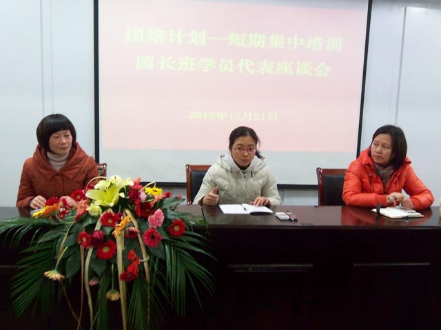 2012年12月21日下午5点整,2012国培短期园长班在教科院会议室召开了召座谈会。会议由教科院副院长张如华主持,来自短期园长国培班的学员代表参加了座谈,首席专家吴玲教授、班主任赵学菊老师等参加了座谈会。