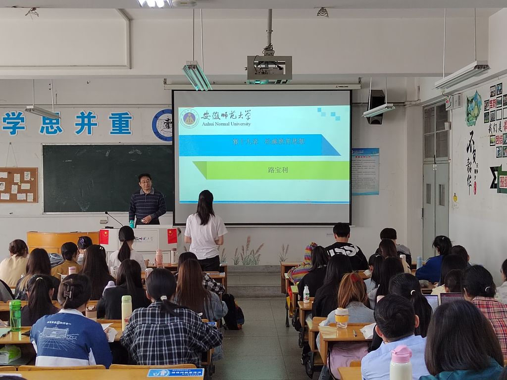 本网讯(教科院 陈元龙)2022年5月12日上午,我院路宝利教授在赭山校区田家炳楼8408教室开展了《外国教育史》本科教学公开课。此次公开课授课对象为21级教育学4班的学生。校督导团、院督导组专家、学院部分中青年教师共同观摩了本次公开课。