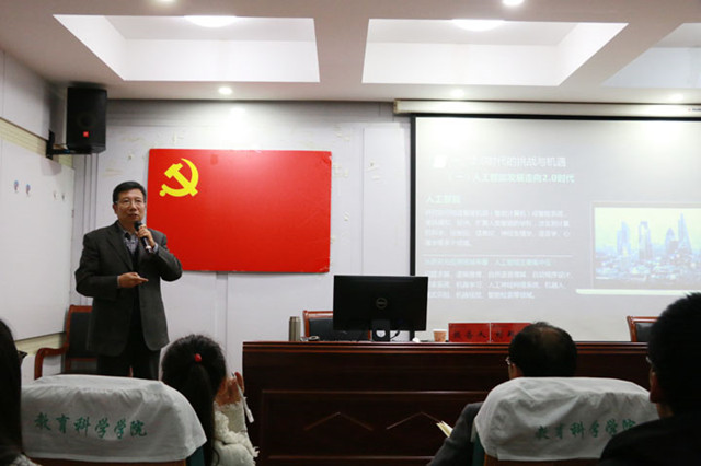 本网讯(教科院 文/朱瑞 图/刘媛媛)回首过往,我国教育信息化1.0时代取得了全方位突破和开创性成就,展望未来,教育信息化开始迈入2.0时代。11月27日下午,我院邀请了中国科大讯飞教育技术研究院院长、首都师范大学教育学院客座教授刘邦奇教授来我院作了主题为“2.0时代基础教育信息化:挑战与对策”的学术报告,报告在教育科学学院三楼学术交流中心进行。副院长聂竹明教授主持本次活动,教育学相关专业教师及研究生近百人到场聆听。