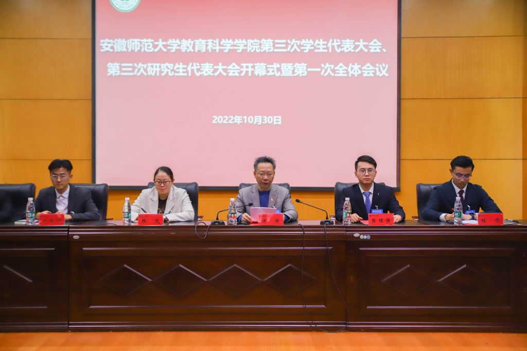 2022年10月30日晚,教育科学学院于赭山校区田楼报告厅召开教育科学学院第三次学生代表大会、第三次研究生代表大会(以下简称学代会、研代会)。会议听取并审议了第二届学生会、研究生会工作报告,选举产生教科院参加校第十五次学代会、第四次研代会代表,以及教科院第三届学生会主席团、学生委员会委员和第三届研究生会主席团、研究生委员会委员。学院共有35名本科生代表、10名研究生会代表参会。院党委书记方泓、副书记杜凤,院团委书记张理强、副书记付银行,以及研究生辅导员程啸出席本次会议。
