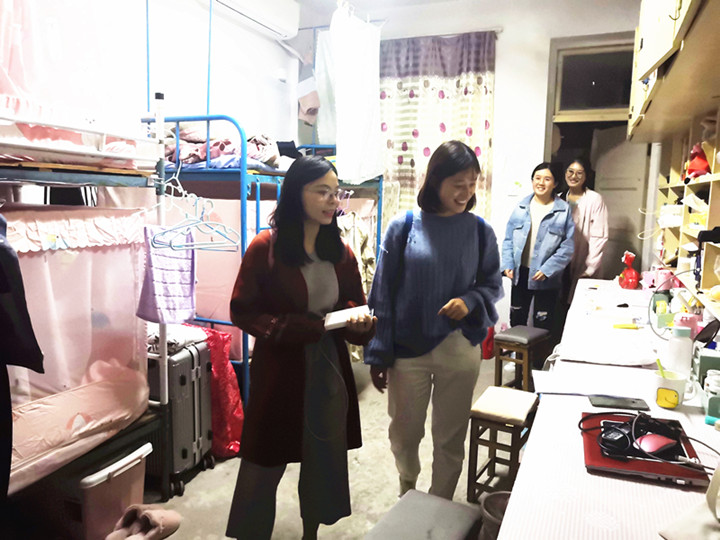 本网讯(文/马妮 图/李艳)为排查秋季安全隐患,切实做好学生宿舍安全工作,倡导学生文明住宿,推进平安校园建设,10月18日下午,研究生管理办公室教务员叶方舟老师、研究生会主席王清涛、副主席房聪等带领研会生活部成员组织开展了秋季安全查寝工作。