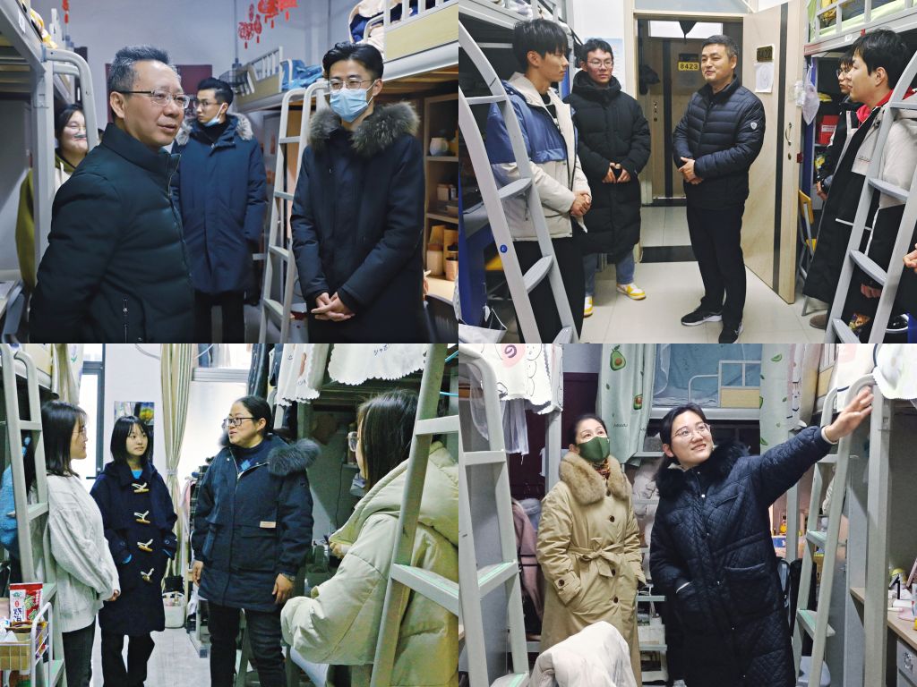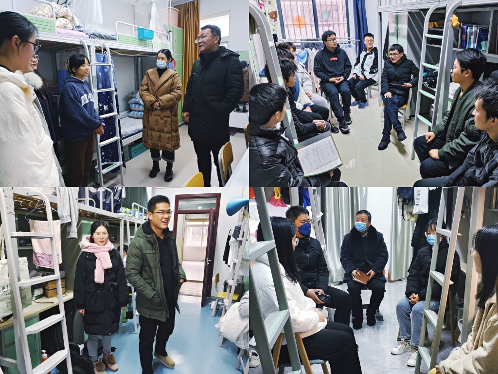 在走访中,领导老师们就新生入学适应情况、毕业班同学考研准备和求职进展情况、英语四六级考试与期末考试等话题进行了广泛交流了解,叮嘱同学们要充分用好期末这段时间,集中精力抓好学习,努力在各项考试中取得好成绩;毕业班同学要广泛关注招聘信息,不放过任何机会积极应聘寻求就业;要注意冬季用电安全,共建安全文明和谐的宿舍环境,把宿舍营造成为温暖友爱的“大学之家”;要充分理解支持疫情防控政策,积极配合属地与学校防控管理,加强个人自我防护,确保身体健康和生命安全。