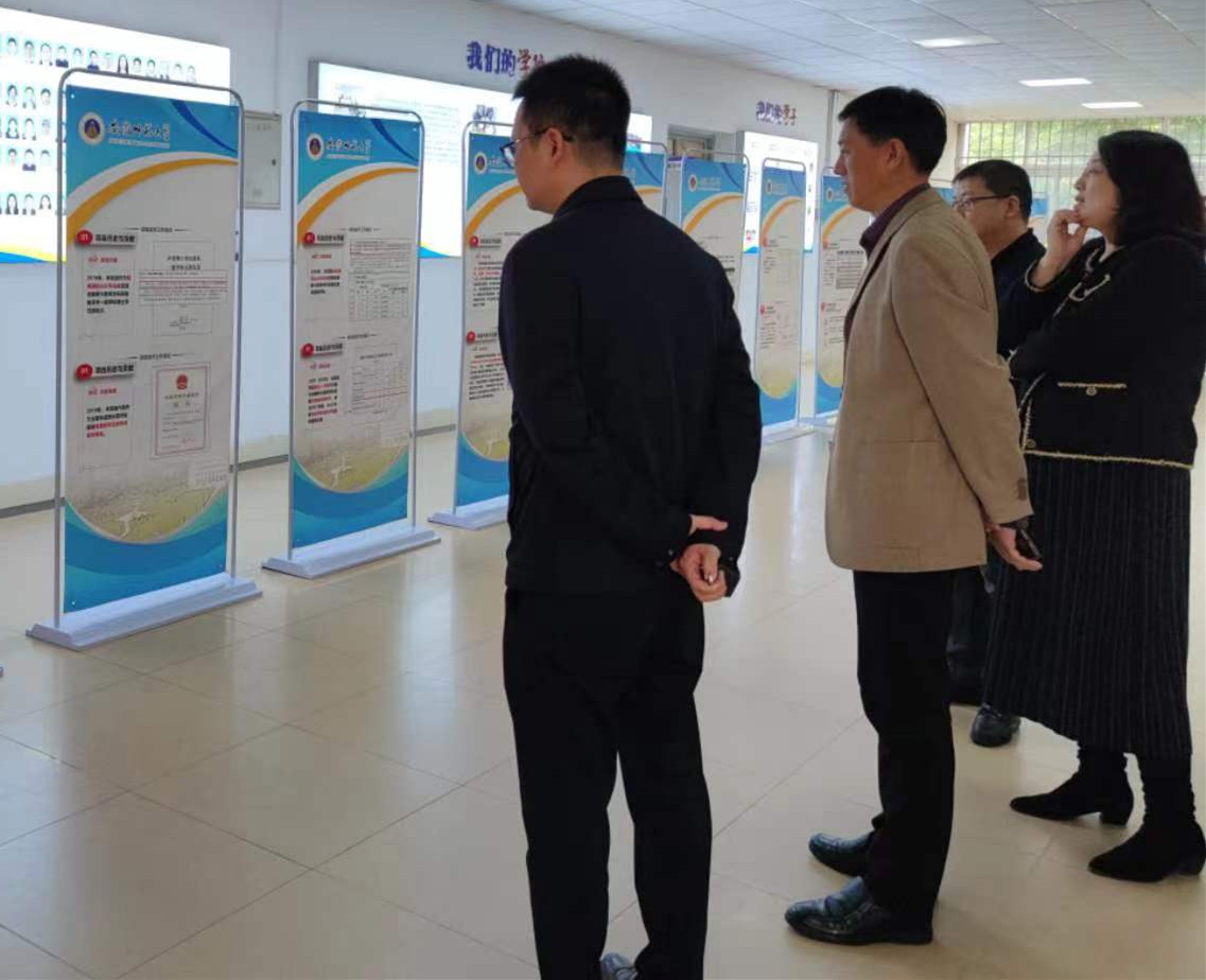上午10点30分,在校党委常委、副校长熊宇杰的陪同下,由省教育厅第四评估专家组组长张严政、安徽工程大学国际交流合作处副处长朱铁军、安徽农业大学国际交流合作处副处长张文静、合肥市教育局基教处副处长徐超组成的评估专家组一行首先参观了我校中美合作现代教育技术专业硕士研究生教育项目自评估成果展,成果展包含本项目办学特色、历史与贡献、人才培养成效等方向的介绍。