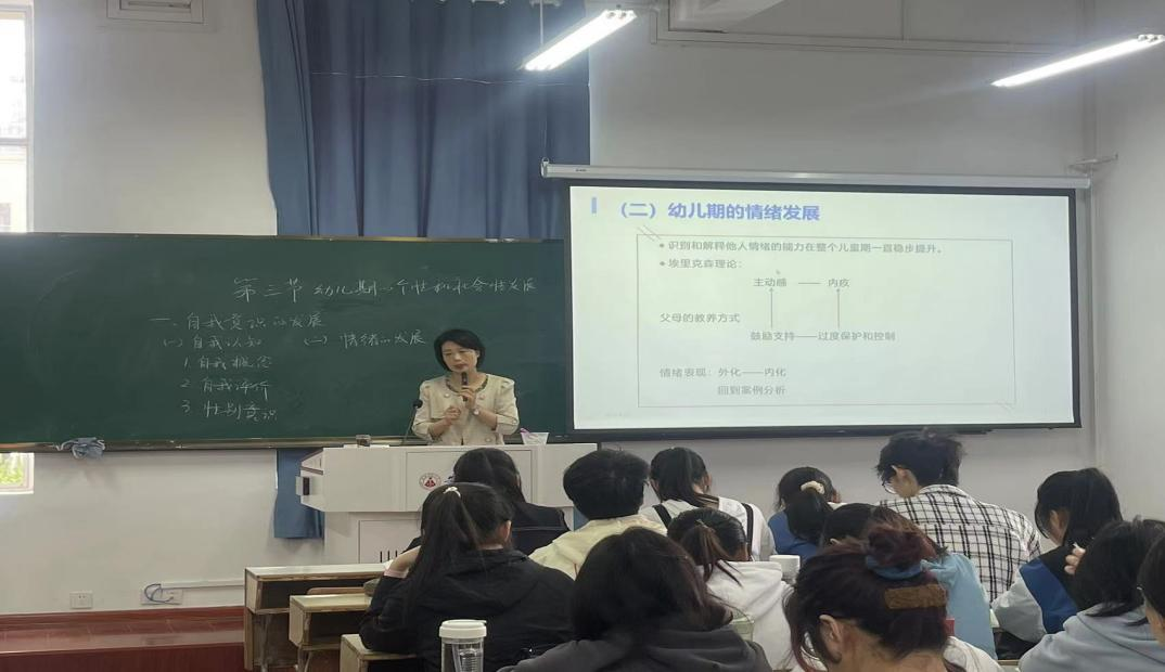 4月26日上午,心理学专业付梅老师在教学楼1301教室举行一场《发展心理学》课程的公开课,授课对象为2022级心理学1班同学,授课内容为“幼儿期的个性和社会性发展”。周兴国教授和金维才教授两位督导团专家莅临指导,学院部分中青年教师到场聆听。
