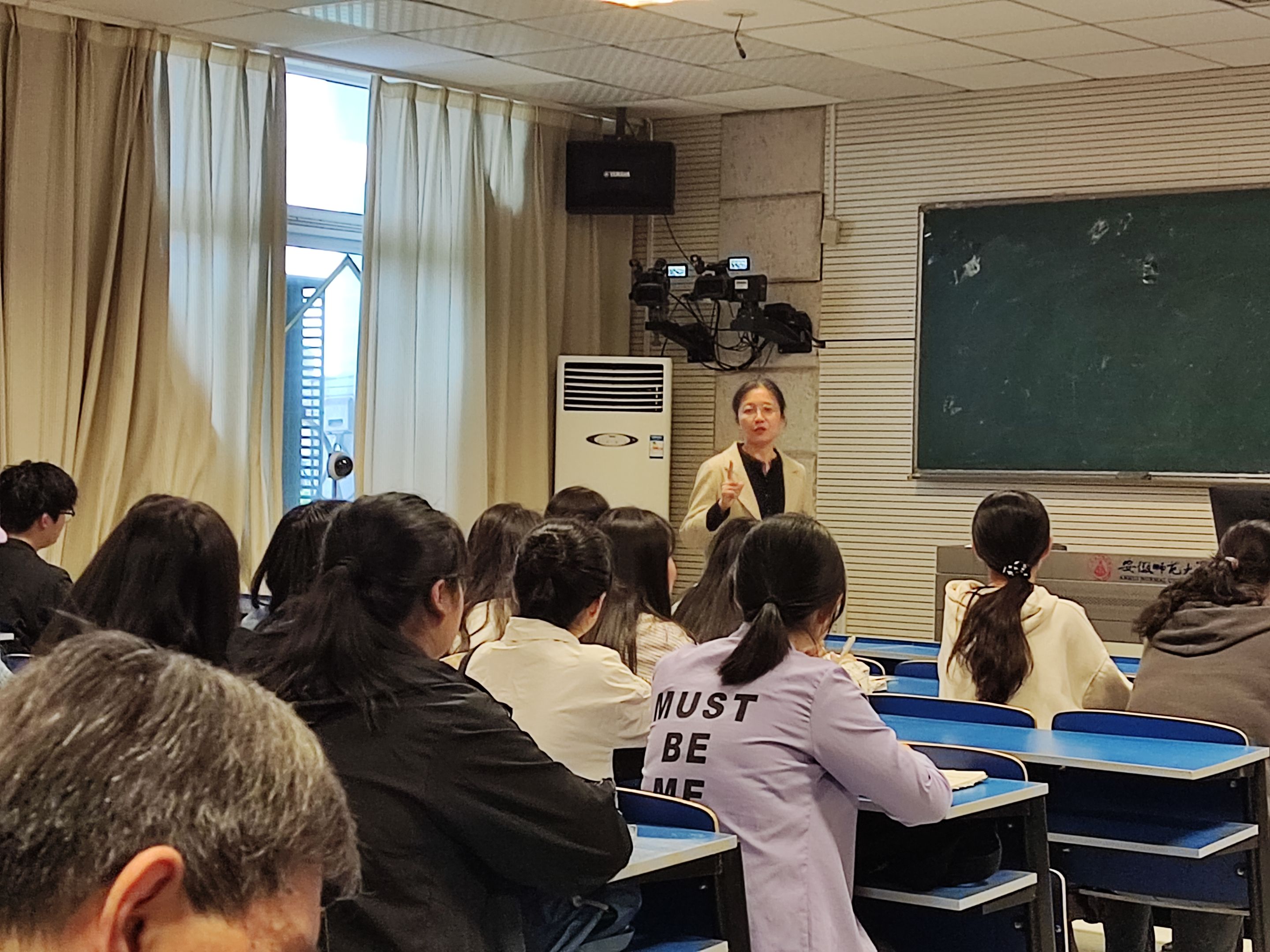 5月24日上午第三节课,我院学前教育专业吴玲教授在田楼8607录播教室为2022级学前教育1班的同学讲授了示范观摩课——《学前儿童发展心理学》 “学前儿童社会性的发展”。校教学督导团和教科院部分中青年教师观摩了此次课程。