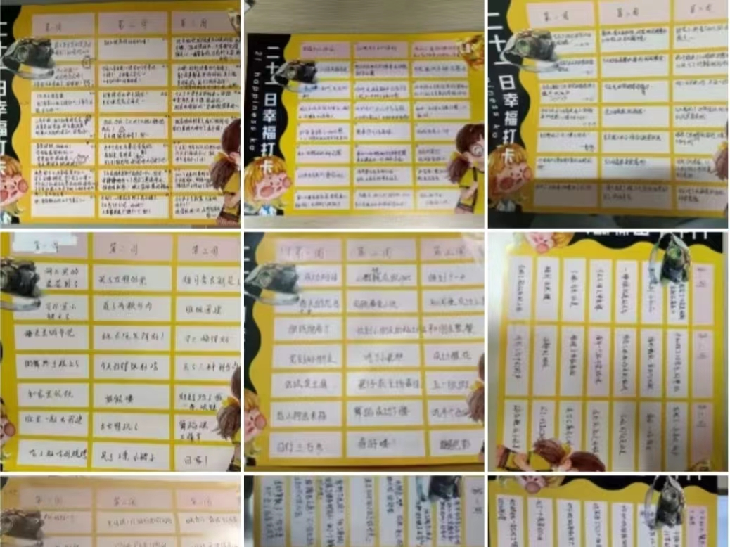 为帮助同学们“走下网络、走出宿舍、走向操场”,在活动中凝聚力量,拉近心理距离,学院在五月组织各班有序开展心理团辅与素质拓展活动。各班在活动中增强友谊,在实践中体会身心健康,不断增强心理健康教育的吸引力和感染力,增强学生心理自助能动性。强化以情化人,以景育人的效果,教科院于5月6日开展5·25“我爱我”心理剧本大赛,200位同学参与其中,学生们将大学生常见的亲子关系、宿舍人际、恋爱、学习等问题,通过生动的汇报展示给全场观众赢得了阵阵掌声,后续将优秀作品推至学校进行展演。21天可以是习惯的养成,也可以是幸福的开始,学院开展21天幸福打卡活动,利用21天效应帮助同学们每天发现身边的幸福事,追寻身边的美好生活。