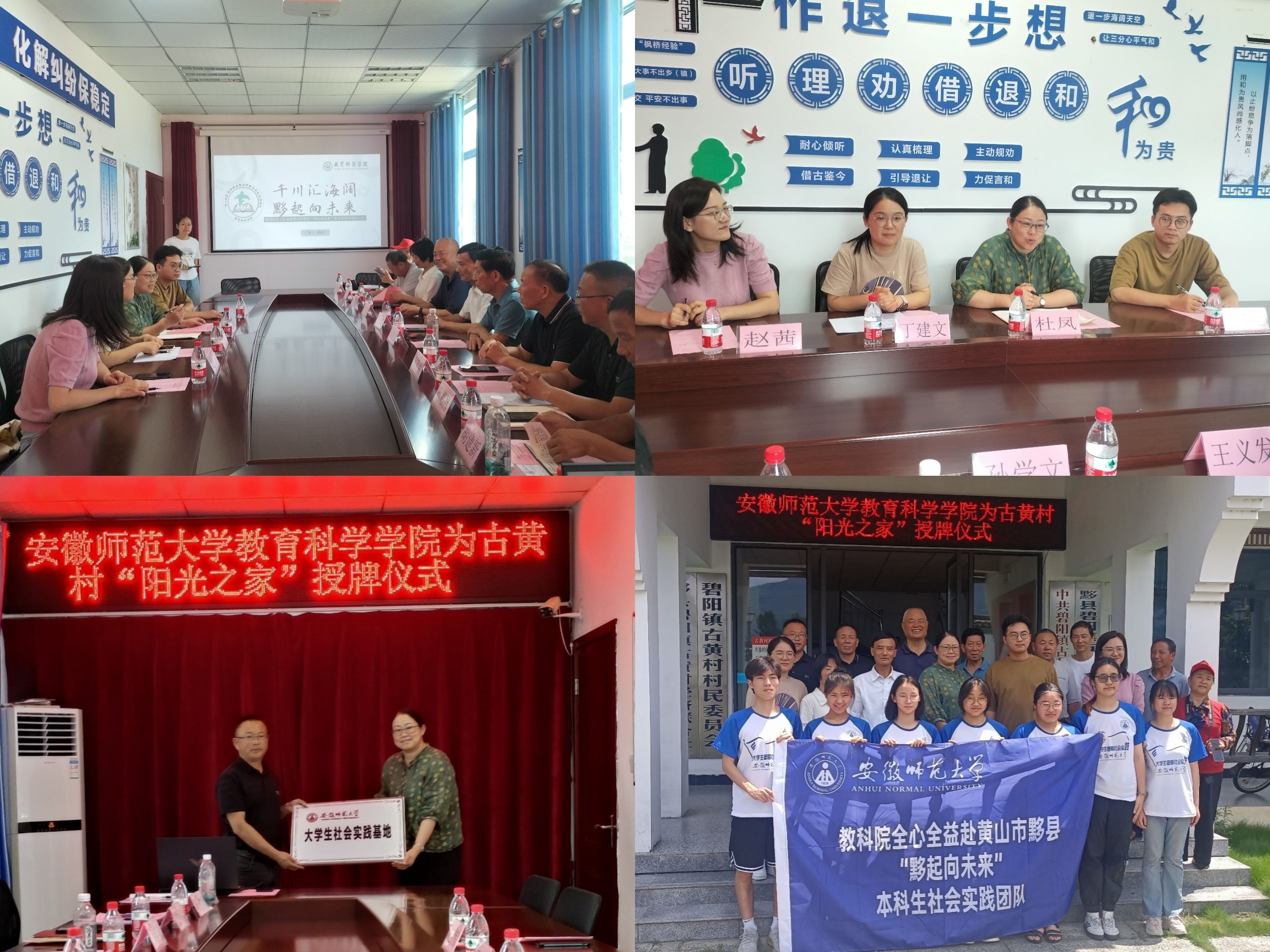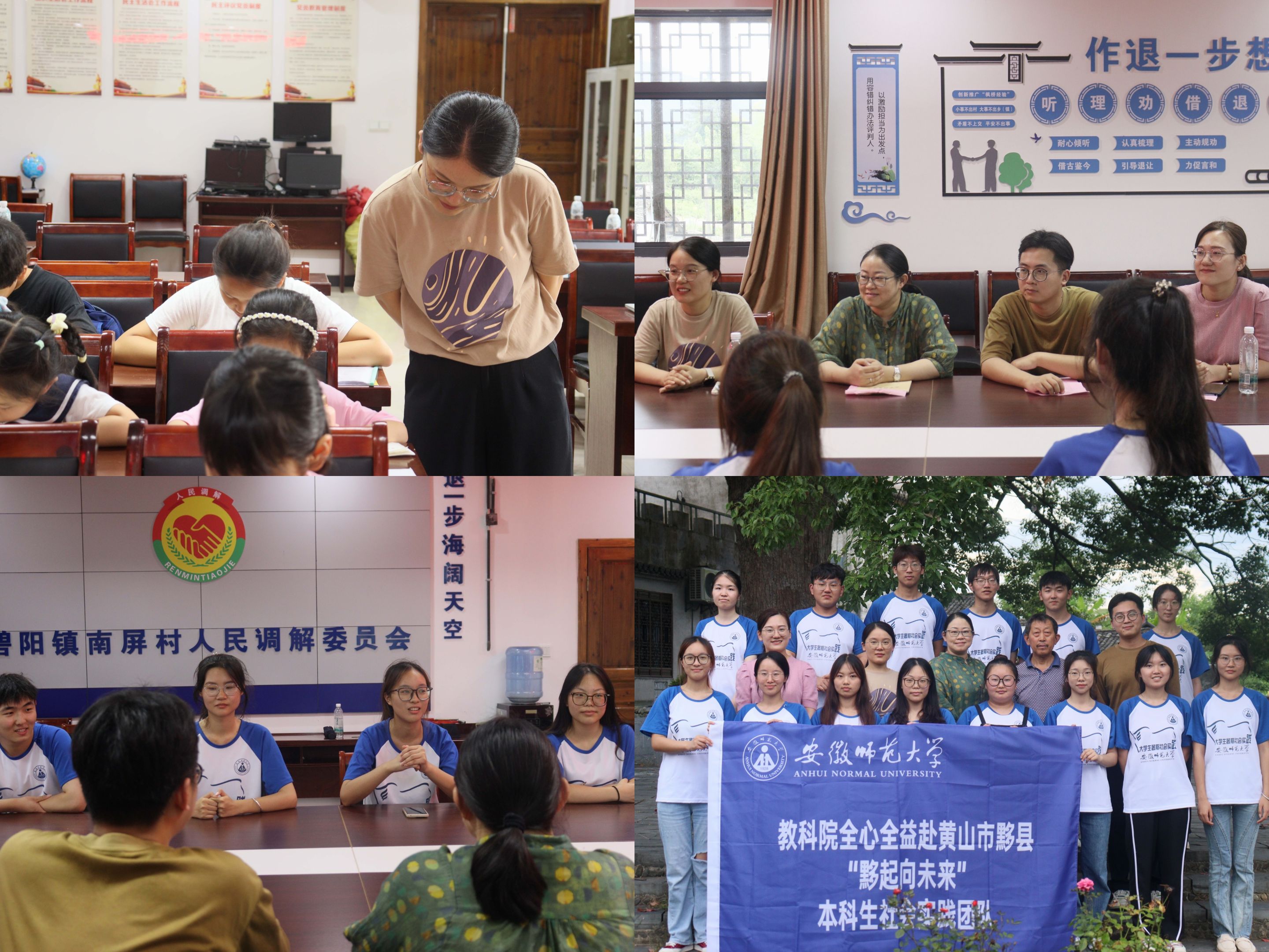 7月18日-7月19日,教育科学学院党委副书记杜凤、暑期社会实践思政指导教师丁建文、团委书记张理强、辅导员赵茜等一行前往黄山市黟县与古黄村共建大学生社会实践基地,并看望慰问在黟县开展暑期社会实践的四支团队。
