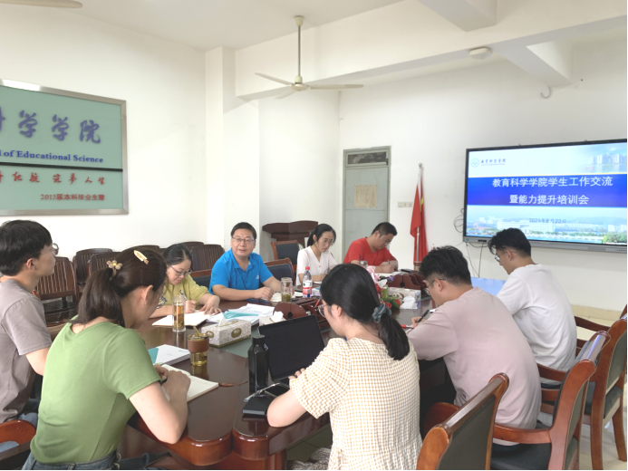 为欢迎新任辅导员加入教育科学学院,进一步提升教育科学学院学工团队工作实务能力,8月22日下午,学院于308会议室举办学生工作交流暨能力提升培训会,院党委书记许国飞、党委副书记杜凤、全体专兼职辅导员参加。