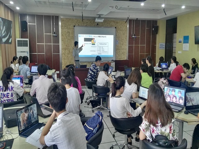 整个教学过程,吴老师直观演示与课程讲授恰当配合,在让学生们了解面向对象编程的基础概念时,也对相关属性与方法的深层探究进行了延伸,学生参与互动积极。与此同时,借助微信群发布PPT课件,使学生可以通过手机观看教学内容,相关操练的素材与实例上传至课程群平台,学生遇到的任何问题也可以发到群中,极大地提高了教学效果与效率。