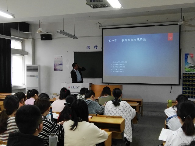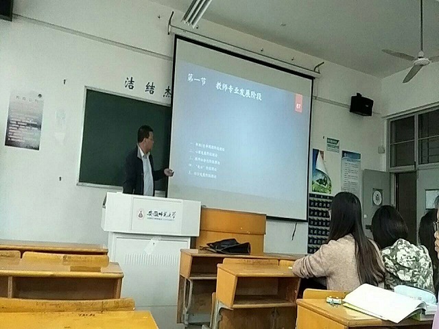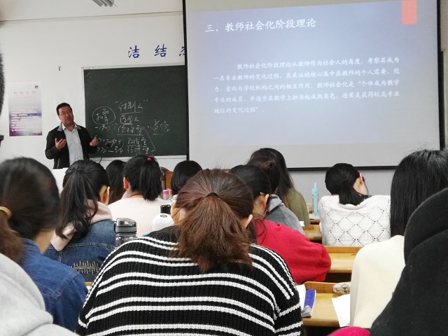 授课中,杨教授首先介绍了教师专业发展的政策背景及其重要意义,并逐渐引出“教师专业发展阶段”这一授课主题。其次,系统梳理了教师专业发展的生命周期阶段理论、心理发展阶段理论、社会阶段理论、“关注”阶段理论的代表人物、核心观点及影响等。然后,他结合自身学术研究成果,客观地评介了各种理论的局限和优势,从而使学生更加清晰地理解其内涵及价值。最后,杨教授结合时代发展趋势与学术界关注的热点问题,为学生呈现出教师专业发展的真实样态、特征及未来图景,引领学生超越历史的时空,以前瞻的思维审视不同理论对教师专业发展的意义。