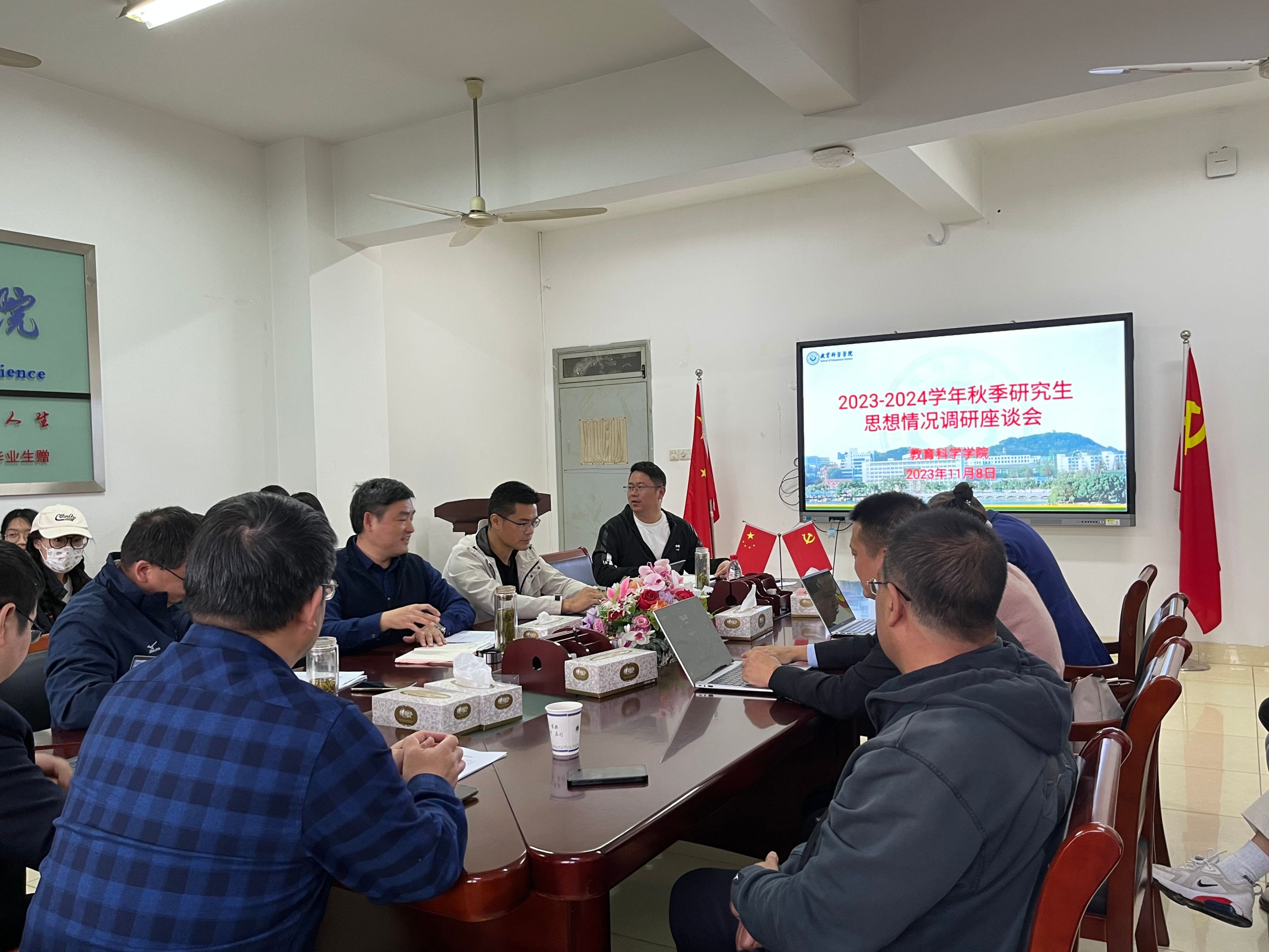 11月8日下午,学院在308会议室召开2023-2024学年秋季研究生思想情况调研座谈会。院党委书记许国飞、院长李宜江、副院长吴文涛,学位点负责人及导师代表方双虎、杨晓奇、周元宽、聂竹明、路宝利、李小平、白倩,研究生各年级辅导员,院研究生会代表及各年级40余名研究生代表到场参会。本次会议由研究生辅导员莫大贡主持。