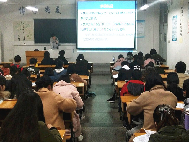 3月18日,大学生心理研究会邀请振娟老师为学生进行了一场关于“梦”的讲座,“梦是什么”到“人为什么会做梦”,再到“健康睡眠小贴士”,在整个讲座过程中,郭老师旁征博引,娓娓道来,氛围轻松活跃,同学们收获良多。此次讲座受到了广大学生的一致好评,在郭振娟老师绘声绘色的讲课中,同学们都对老师的观点产生共鸣,同时表示以后努力养成良好睡眠习惯,迎接健康生活。