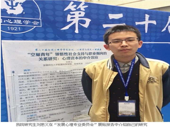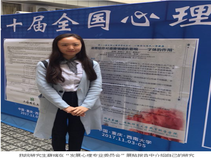 安徽师范大学作为安徽省心理学学科发展的领头羊,近年来学院高度重视心理学学科和平台的建设工作,为师生参加各种学术交流提供多方面支持。在为期两天的学术会议中,我院师生共有23篇摘要入选,其中包括1场专题报告、11场分组口头报告和7场展贴报告。我院心理学专业师生与来自世界各地的同行专家、学生代表进行了广泛而深入的交流,既了解了学界的最新研究动态,也开阔了学术视野,激发了对前沿问题的研究兴趣,展现了我院师生的良好学术水平。