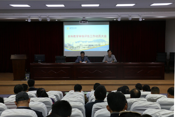 领导高度重视,学院在5月初就召开了审核评估动员会,进行迎评宣传动员和工作布置,让全体教职工充分认识到此次评估的重要性和意义。随后多次召开全院教职工大会,组织全院教职工和学生学习《本科教学工作审核评估知识手册》、学校《自评报告》、学院《自评报告》等,使全院师生员工熟悉专家组进校考察的项目与方式,了解学校评建工作的历程、成效和本院所取得的成果,明确自身的工作任务和质量标准等。