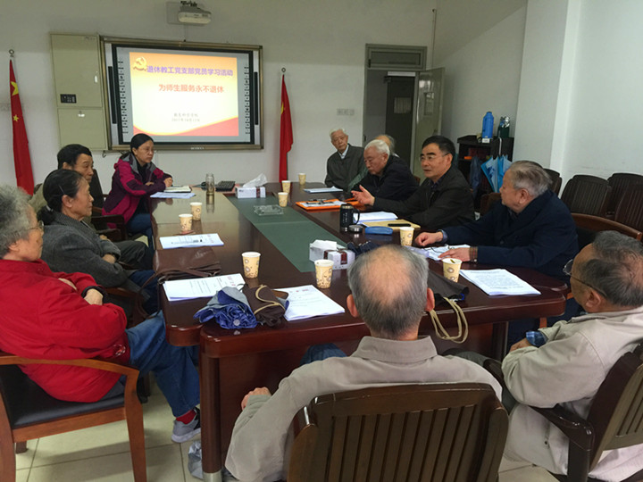 本网讯(教科院 马兴)退休不退党。为进一步增强退休党员学习活动的规范性和常规性,10月12日下午,学院退休教工在学院308会议室开展了“为师生服务永不退休”的主题学习活动。学院党委副书记张如华及退休教工支部成员参加了此次会议。会议由退休支部书记王守恒主持。