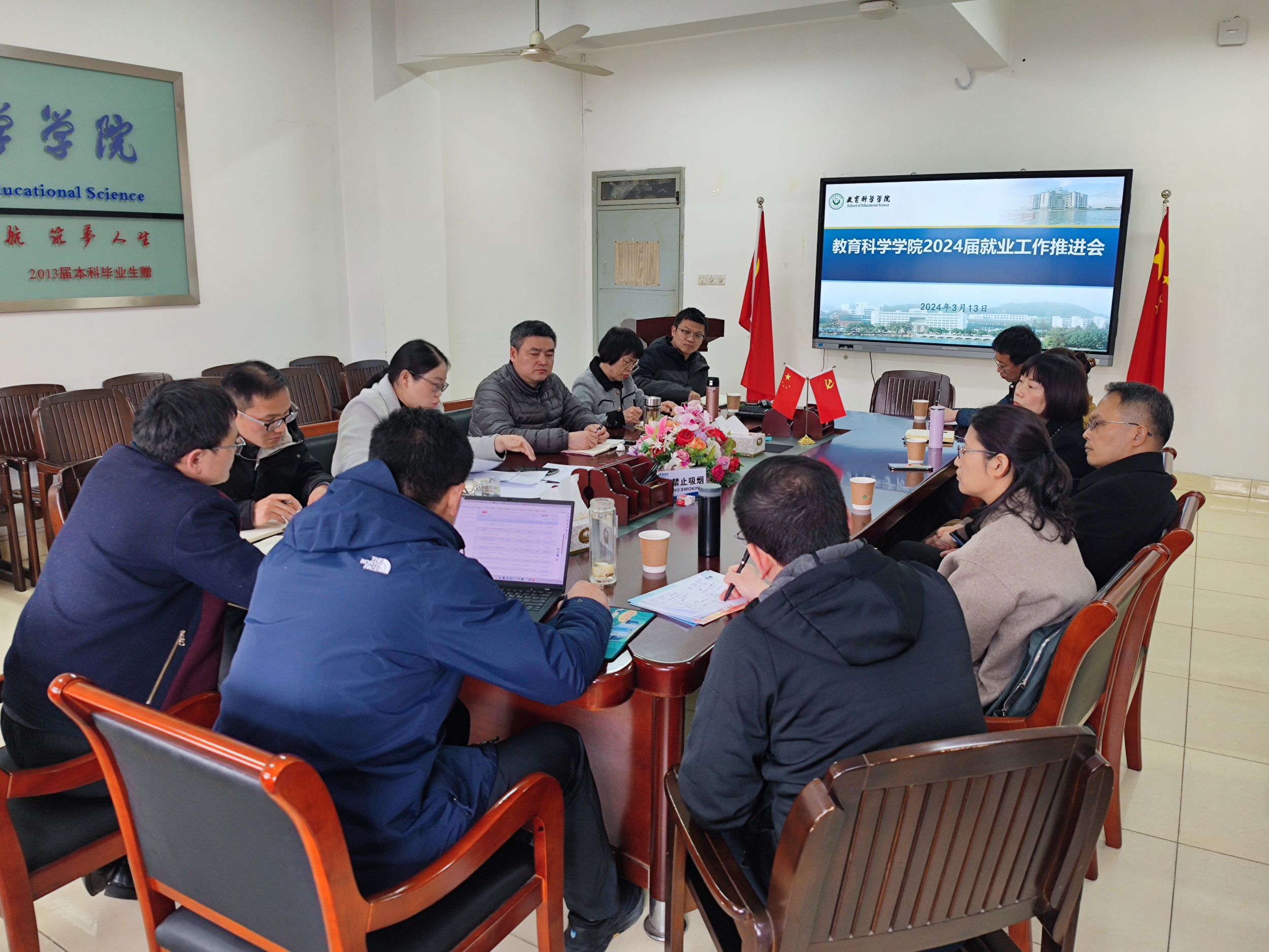 为着力优化就业指导服务,促进毕业生高质量充分就业,3月13日下午,教育科学学院在308会议室专题研究推进2024届毕业生就业工作。学院全体领导班子、专业负责人和专兼职辅导员参加会议,会议由学院党委副书记杜凤主持。