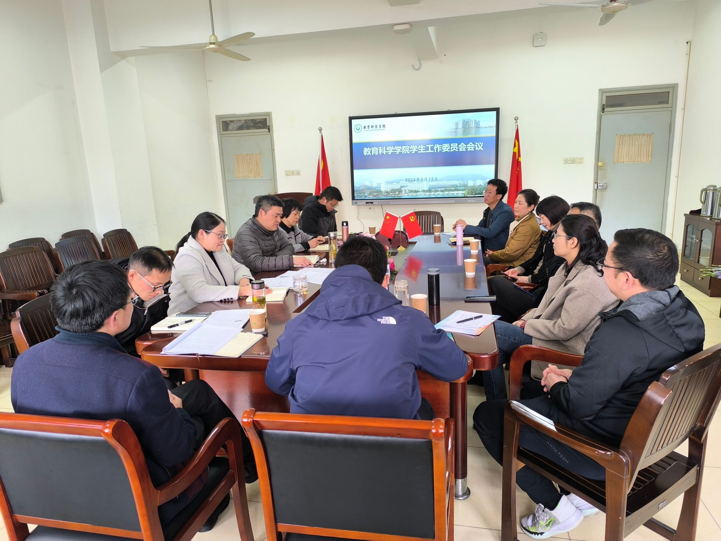 为充分了解学生情况,提升学院护航保障能力,3月13日下午,教育科学学院在308会议室召开学生工作委员会会议专题研究部署新学期学生护航工作,学院党委副书记杜凤主持,院学工委全体教工委员参加会议。