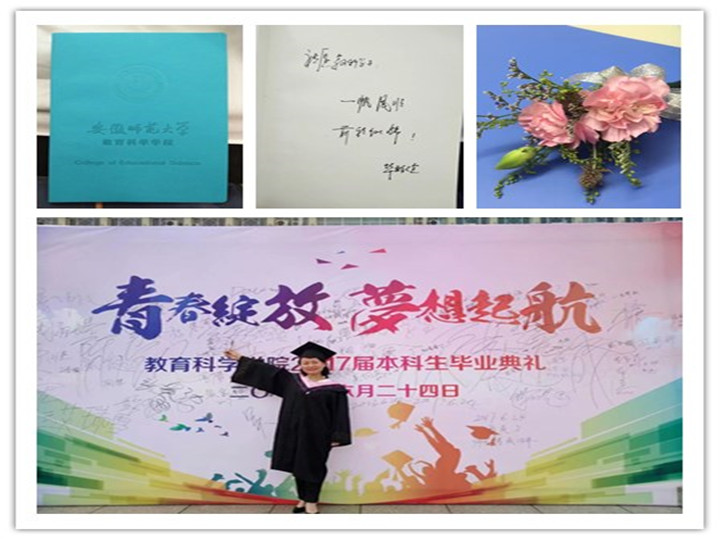 一场盛典,绵绵情谊只念薪火相传。当专业负责人宣读每一个毕业生获得学士学位决定的时候,当每一个教授委员会成员为每一个毕业生拨穗颁证的时候,当低年级同学接过毕业班同学传递的院旗时,当校友联络员接过副校长亲自授予的校友聘书时,当非毕业班同学坐在台下真心祝福学长学姐顺利毕业之时,当我们在签名墙上留下满满的祝福时,当我们高声吟唱“潜岳苍苍,江淮汤汤......莘莘多士,跻兹上痒”时,我们感受到的不仅是收获的喜悦,更是一种师大精神的传承。四年师大行,一生师大情。每一个师大人将继续秉承师大“勤学慎思、质朴谦逊、知行合一、求实求新”优良学风,砥砺前行。