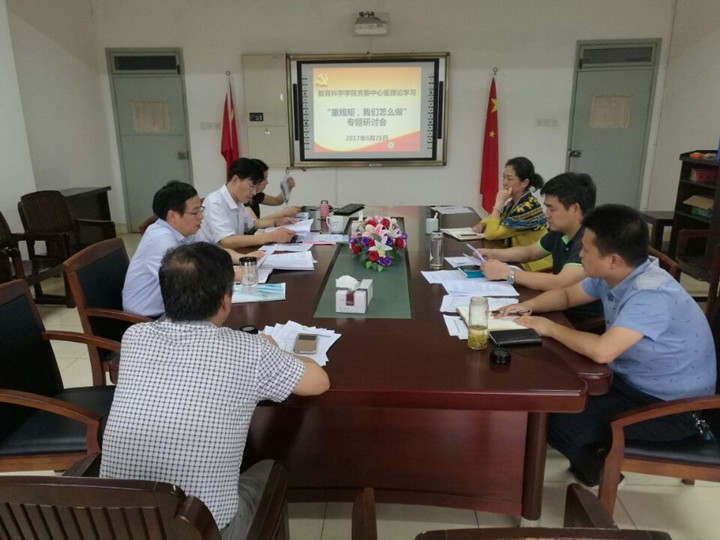 本网讯(教科院 )不以规矩,不成方圆,重规矩才能显正气。根据推进“两学一做”学习教育常态化制度化和开展“讲政治、重规矩、作表率”专题教育的实施方案要求,6月26日下午,教科院党委中心组召开“重规矩,我们怎么做”专题学习研讨会,院党委书记刘晓宇主持会议,院党委全体成员参加了学习讨论。