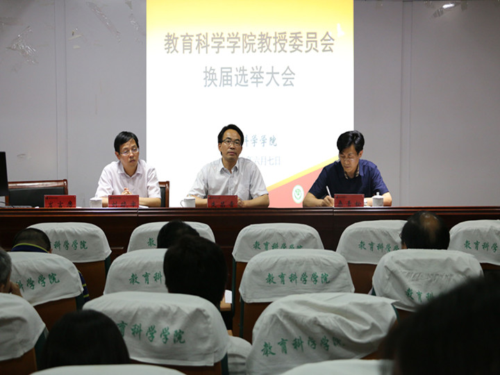 本网讯(教科院文/吴钦金 图/刘和海)为充分发挥教授在学院建设与发展中的作用,提高学院办学水平和育人质量,推动学院各项事业健康和谐发展,6月7日下午,我院在学院三楼学术交流中心召开教授委员会换届选举大会。校教授委员会副主任委员朱昌青教授出席会议,院长桑青松主持会议。