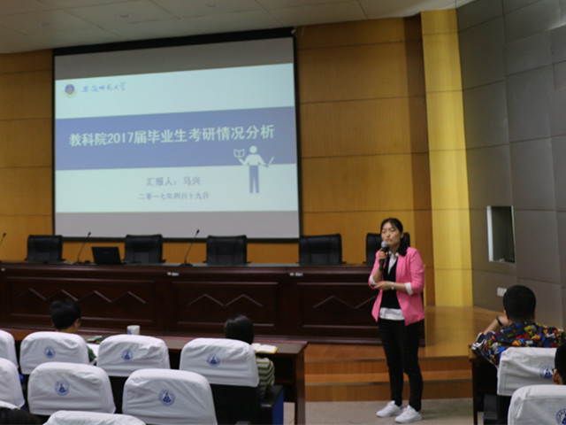 教科院历年来高度重视学生的考研工作,2017届同学考研成功率33.1%,较去年有较大幅度提升,其中心理学专业考研成功率接近50%。学院多措并举,通过考研分析、动员交流、假期慰问、包车送考、重点答疑、考试辅导等方式助力教科学子“研途”成功。学院将在接下来的时间继续勉励有考研意向的同学坚定考研信念,积极报考自己满意的学校,并营造良好的学习风气、学习氛围,为同学们保驾护航。