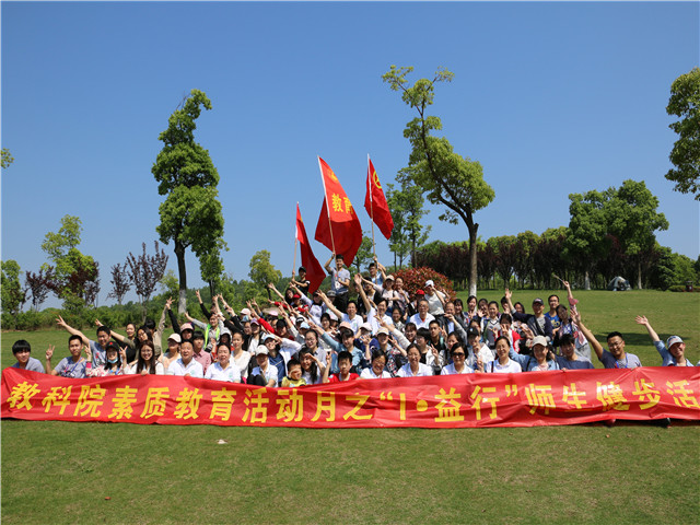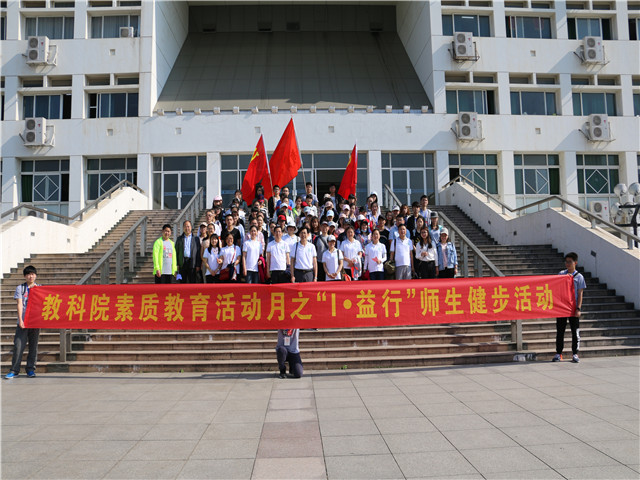 本网讯(教科院 王安琪)为了增强师生体魄,增进师生关系,院团委学生会于4月23日上午顺利举行“I·益行”师生健步行活动。本次活动以“团结益行时代,展现教科风采”为主题,分为趣味竞走和趣味探索活动两个部分。院党委书记刘晓宇、院长桑青松、院党委副书记张如华、副院长何海燕、部分教职工和本科生参加了活动。