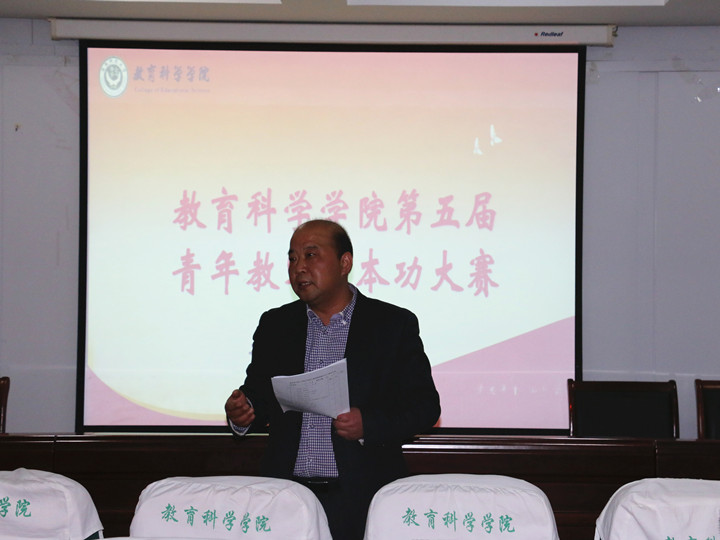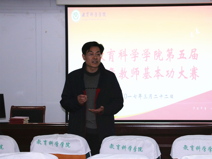 本网讯(教科院 黄引娣)3月22日下午,学院举办了第五届青年教师教学基本功大赛,大赛评委特邀了经管学院教授伍旭中、学院教授委员会成员及院督导组组长,部分青年教师观摩了比赛。