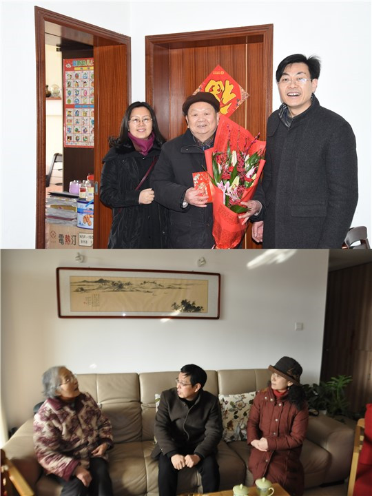 (本网讯 教科院 卞纲要)在鸡年春节即将来临之际,院领导刘晓宇、桑青松、张如华、何海燕在学院行政办公室和院工会同志的陪同下,分别走访慰问了学院11位离退休老教师、老领导、生病住院及困难教职工,给他们送上新春的问候和祝福。
