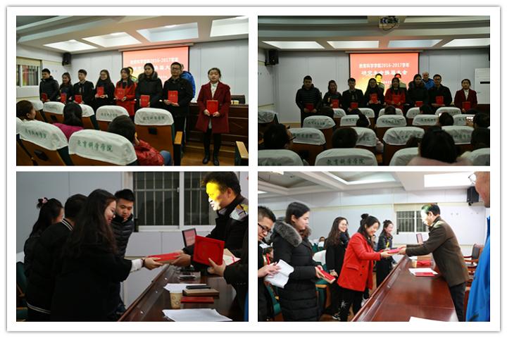 本网讯(魏文静/文 胡旭珽/图)我院于11月23日在院三楼学术交流中心举行2016-2017学年研究生会换届大会。院党委书记刘晓宇、副院长聂竹明为上届研究生会成员颁发聘书、纪念品并合影留念。研究生秘书过婴宝,16级研究生兼职辅导员及新老两届研会成员参加大会。会议由上届研会副主席杨一捷同学主持。
