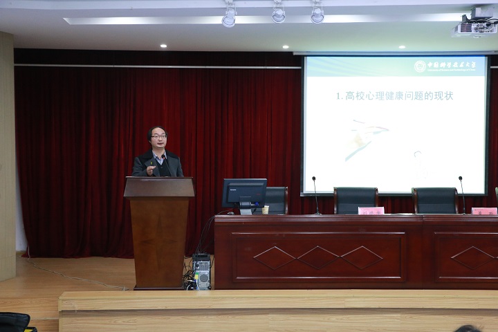 中国科学技术大学心理健康教育与咨询中心主任沈克祥是我院培养的优秀毕业生,从事心理学教学及研究工作17年,在高校心理健康教育实务方面有着突出的贡献。此次专程回到母院,应邀在“皖江心理大讲堂”开讲,题目是《中美高校心理健康教育差异化思考》。