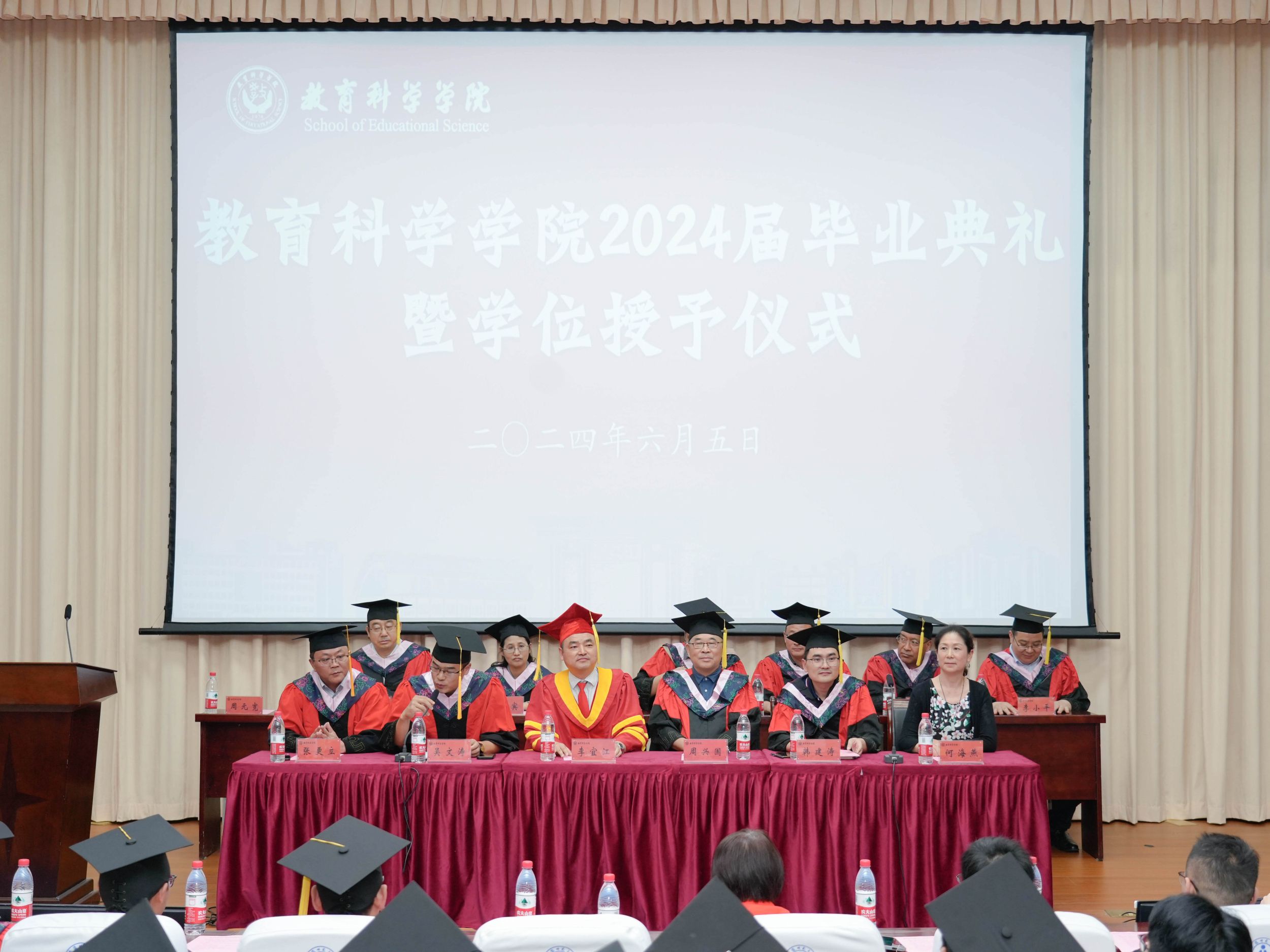 6月5日下午,教科院于赭山校区科技小礼堂举行2024届毕业典礼暨学位授予仪式。学院领导、老师和全体毕业班辅导员以及全体2024届毕业生出席本次活动,典礼由副院长吴文涛主持。全体毕业班学子排队上台一一拨穗并合影留念,院长李宜江表达了对于毕业生的期望与祝福,希望所有教科学子都能胸怀在教科院的所学所得,继续在全国各地建功立业。6月22日,学校2024年毕业典礼暨学位授予仪式在花津校区大礼堂隆重举行,教科院毕业生代表于科技小礼堂分会场线上观看了学校毕业典礼,并由现场领导老师为其进行拨穗仪式。