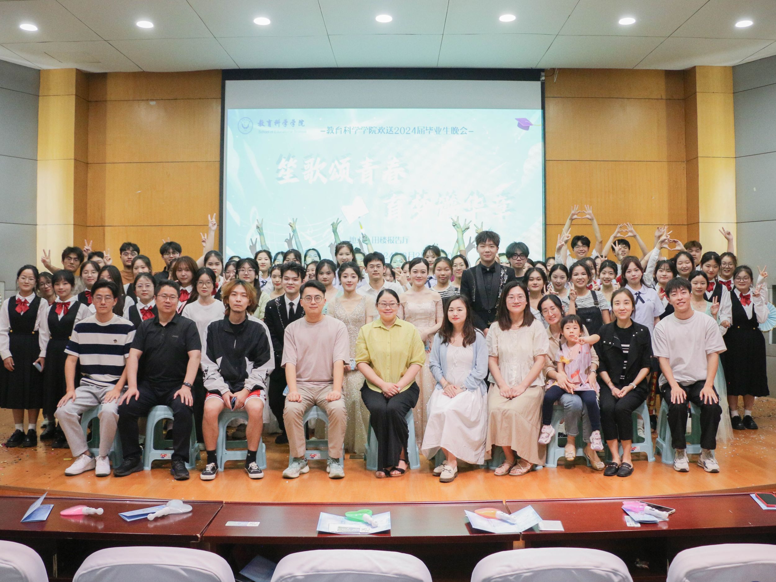 教科院于6月2日晚于田楼报告厅开展了“笙歌诵青春,育梦谱华章”毕业生晚会,晚会涵盖了语言、舞蹈、歌曲等多种表演形式,在帮助毕业生回顾自己的大学四年生活同时,也为毕业生们送上了真挚的祝福。此外,教科院还在晚会开始前为即将毕业的教科学子们准备了代表学院的邮票作为纪念礼物,同时制作了签名墙、手印树供同学们签名、合影留念,全方位为毕业生们开启了一场难忘的视听盛宴。