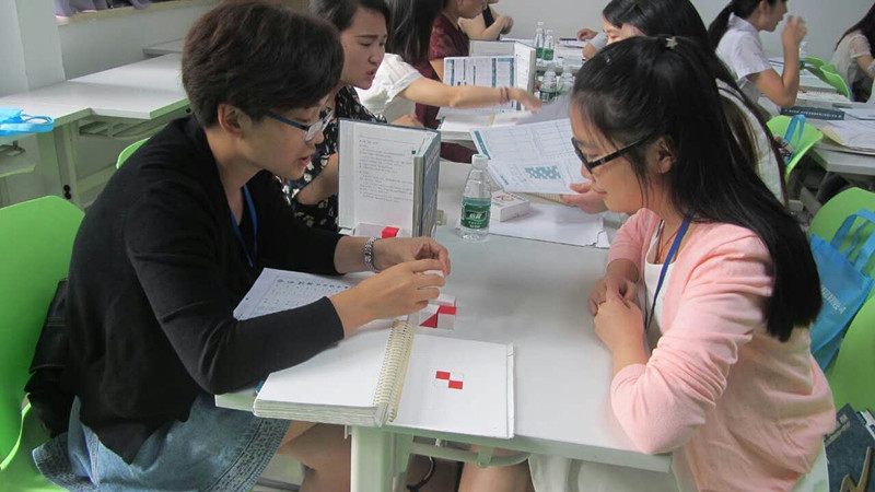 为期三天的培训工作部署的紧锣密鼓。9月23日,由深圳市儿童医院心理科主任周家秀为大家详细介绍韦氏儿童智力量表第四版与以前使用的第二版有何不同、适用范围;逐一介绍第四版中10个分测验和4个补充测验的具体实施过程、操作注意事项、测试要点及难点、记分规则。24日上午,由深圳儿童心理科医生张琳琳带领大家实际操作,学员互为主试和被试,在操作中发现问题解决问题。24日中午,主办方对所有学员进行主试资格考试以确定是否通过。24日下午至25日下午,由韦氏儿童智力量表第四版中文版的主要研究者之一、北京师范大学珠海分校教育学院心理测量教研室主任李毓秋教授为大家介绍中国目前及以后各类测试量表的规范化,国际化形式;详细介绍依据国情进行的量表修订工作、常模编制过程;各分量表得分的解释、整体得分解释、量表之间的比较;对各类儿童后续帮助的实施;回答大家的疑问。