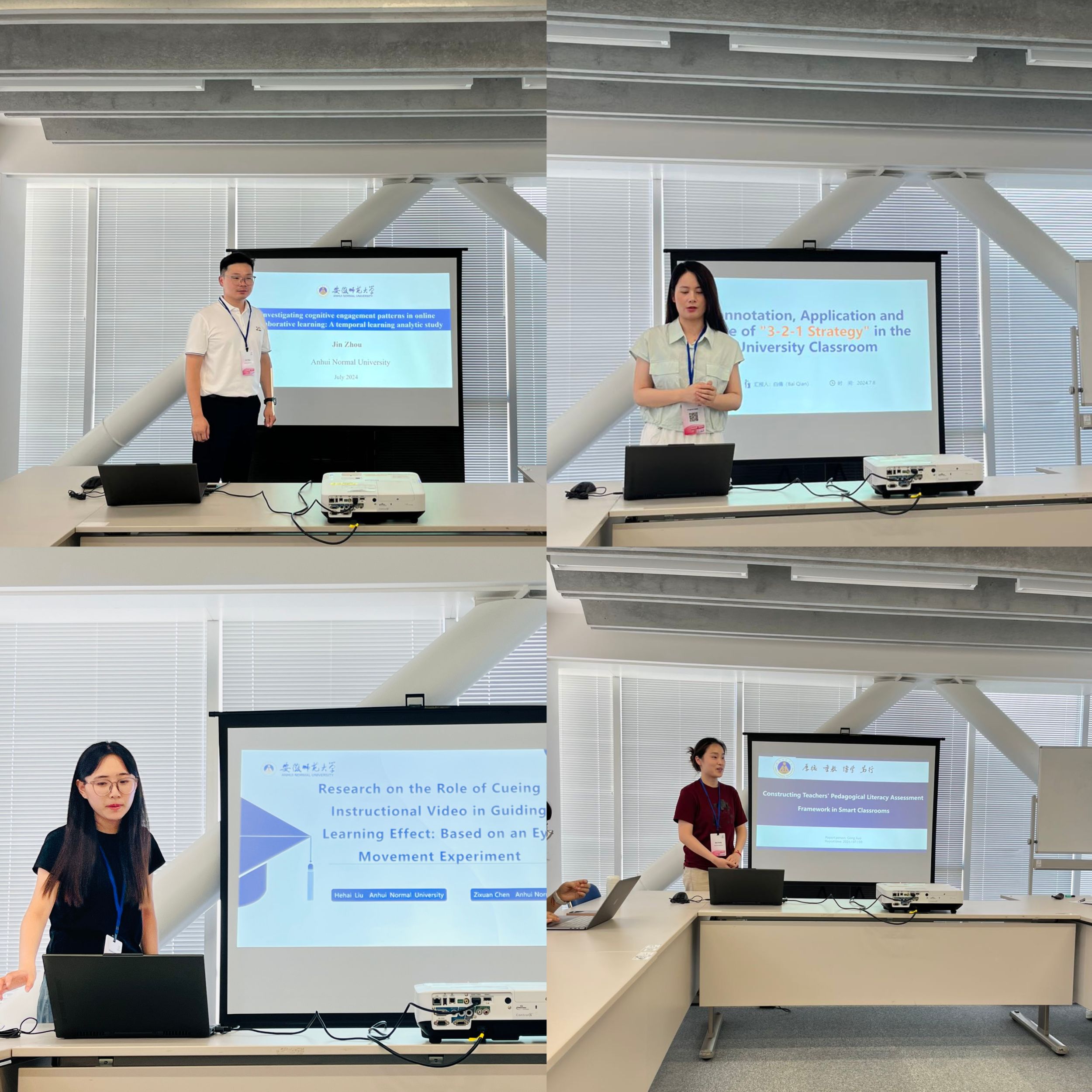 在本次会议中,刘和海教授受邀担任A4分会场主席,并由我院白倩老师主持该分会场的9场报告。在论文报告环节,我院周进老师分享《Investigating cognitive engagement patterns in online collaborative learning: A temporal learning analytic study》,白倩老师分享《Connotation, Application and Value of “3-2- 1 Strategy” in the University Classroom》,获得了其他汇报者与参会者的认可。此外两名研究生分别进行了相关主题汇报,陈子璇同学分享《Research on the Role of Cueing in Instructional Video in Guiding Learning Effect: Based on an Eye Movement Experience》,主要探讨基于眼动实验的教学视频提示对学生学习效果的影响。宫雪同学汇报《Constructing Teachers' Pedagogical Literacy Assessment Framework in Smart Classrooms》,旨在探讨智能教室环境下如何构建一个评估教师教学素养的框架。