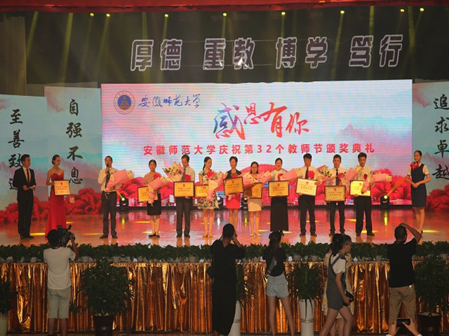 颁奖典礼上,校领导、专家教授分别为获奖代表颁发证书,学生志愿者向获奖教师向上鲜花。我院2015-2016年度的多项工作荣誉喜获表彰:学院档案工作荣获校“档案工作先进集体标兵”称号;学院暑期社会实践工作荣获校大学生暑期“三下乡”社会实践优秀组织单位;学院就业工作分获校研究生就业工作先进单位、本科生就业先进单位;此外,吴文涛荣获校“就业工作先进个人”。