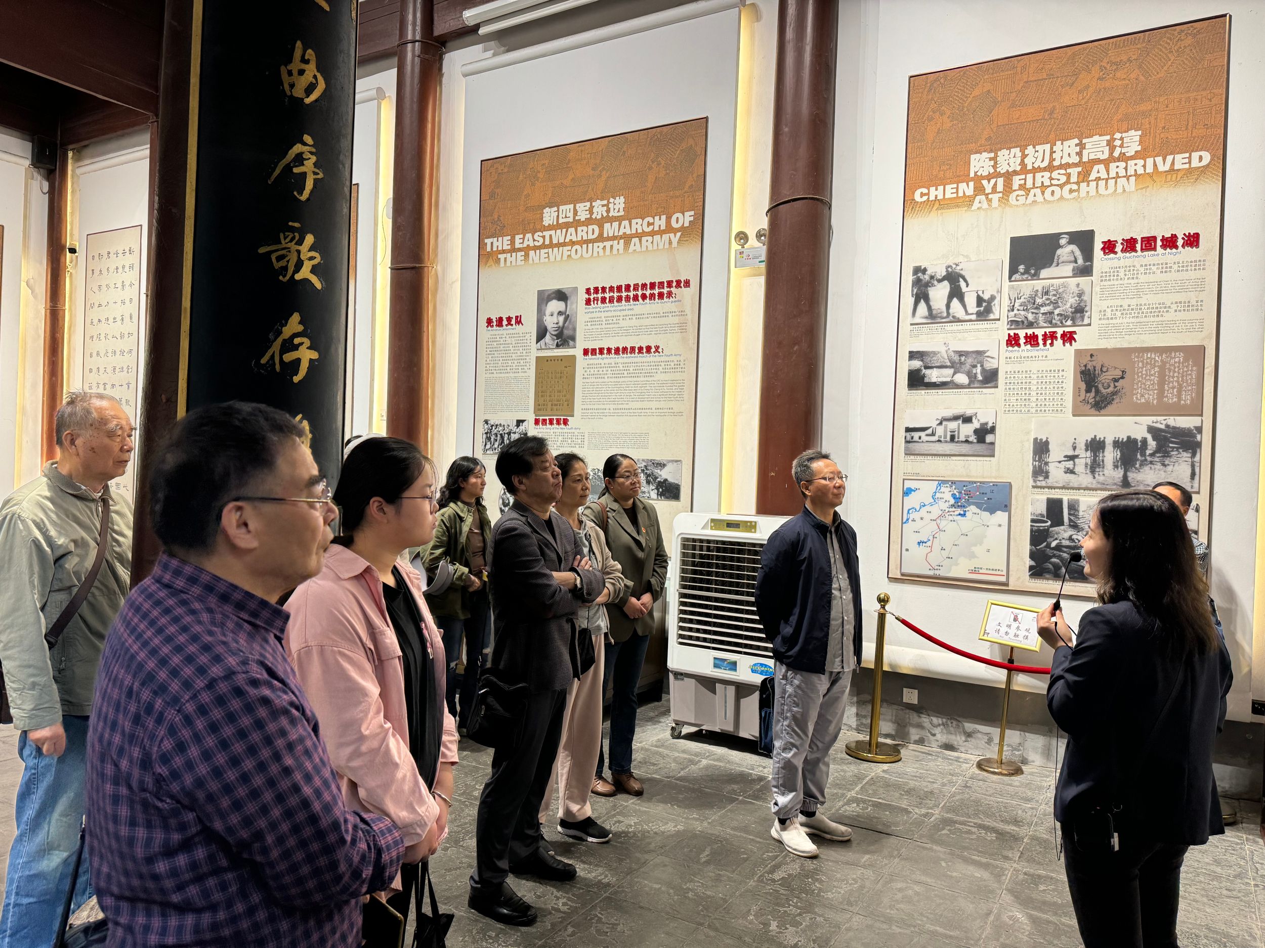 到达高淳老街后,大家首先参观了高淳新四军一支队司令部旧址,在展厅中,一幅幅珍贵的照片,一件件饱经风霜的实物资料,仿佛将时间拉回到了那个烽火连天的年代。新四军一支队在陈毅司令员的英明领导下,穿梭于茅山之间,突破重重封锁,最终在固城河畔扎根,为抗击日寇、保家卫国立下了不朽的功勋。在讲解员的详细介绍下,大家深刻了解了发生在高淳的新四军故事,深入学习新四军诞生、发展历程。面对陈毅的铜像,同学们誓言将革命精神内化于心,外化于行,以实际行动践行新时代青年的使命与担当。