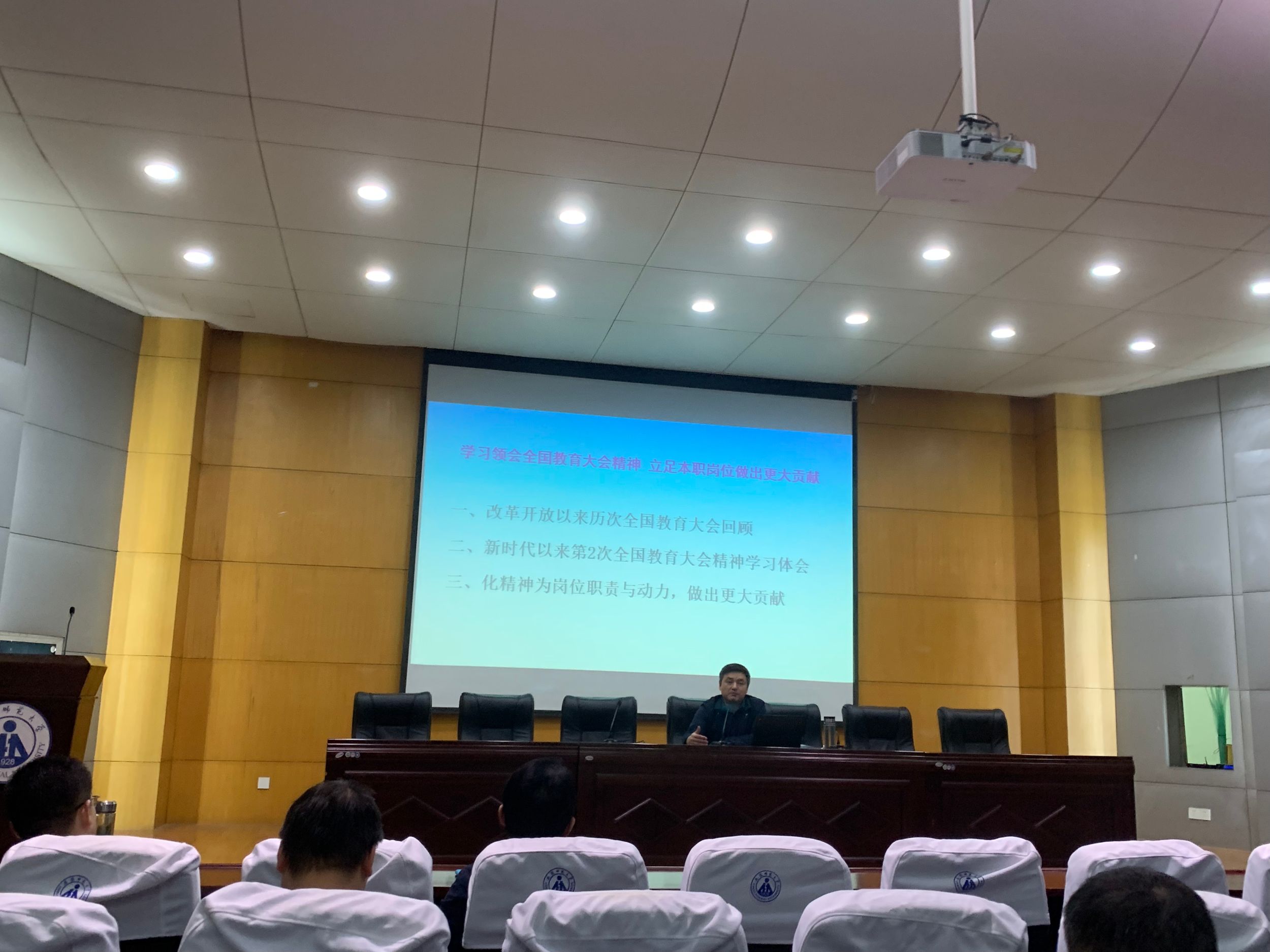 会上,院长李宜江做了题为《学习领会全国教育大会精神 立足本职岗位做出更大贡献》的专题辅导。他对改革开放以来历次全国教育大会进行了系统回顾,重点分享了对这次全国教育大会精神的学习体会,着重解读了教育的三大属性、教育强国的六大特质、教育强国建设的五个重大关系以及教育强国建设的五大战略任务,呼吁全体教职工将大会精神转化为岗位职责与动力,为教育强国建设做出更大贡献。许国飞在主持会议时要求,学院教职工要坚持以钉钉子精神把大会精神落到实处,为以中国式现代化全面推进中华民族伟大复兴作出新的更大贡献。