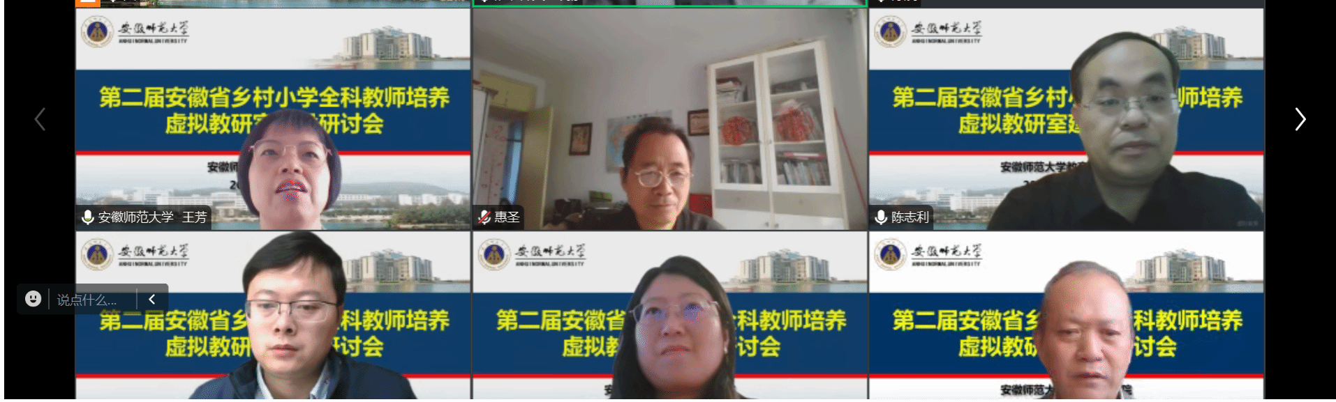 10月20日上午,第二届安徽省乡村小学全科教师培养虚拟教研室建设研讨会以线上方式顺利举行。本届会议主题为“乡村小学全科教师培养模式创新与教育高质量发展”,安徽师范大学、安庆师范大学、合肥师范学院、亳州学院、阜阳师范学院、淮北师范大学、淮南师范学院、宿州市屏山镇中心学校等40多位教师代表参加了此次会议。会议由安徽师范大学小学教育专业(全科型)负责人王芳老师和专业秘书马兴老师共同主持。
