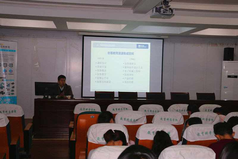 4月22日上午,学院邀请科普产品国家地方联合工程研究中心举办“育你同行”应用心理学专业专场招聘会,党委副书记张如华主持了招聘会,应用心理学、教育学专业本科生和教育技术专业研究生40余人前来应聘。中心总经理刘伟博士和芜湖分中心李挺主任分别介绍了该公司的软硬件条件、各类国际国内交流活动、团队工作理念和企业文化,特别对创客和创客教育的发展历程以及具体招聘条件和要求做了详细说明。据悉,该公司是2008年安徽省发改委批准,由安徽省科协、中国科学技术大学、中科院合肥物质科学研究院、合肥通用机械研究院、科大讯飞股份有限公司等单位共同组建成立的国内首家集“产、学、研、用”为一体的科普产品工程研究中心,2013年10月被国家发改委批复命名为“科普产品国家地方联合工程研究中心”,从而升格为国内唯一面向科普产品研发及产业化的国家级工程研究中心。目前,公司紧紧围绕科普展教、科普信息化、科普创客教育三大类业务线积极开展市场活动。本次招聘培训讲师、课程教研员、高校关系专员和多媒体设计与开发人员若干名。在招聘会现场,应聘毕业生就纷纷递交了个人求职申请表和简历。当天下午六点,麦穗创客教育芜湖分公司对应聘同学进行面试,应聘结果将于近期公布。