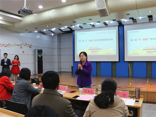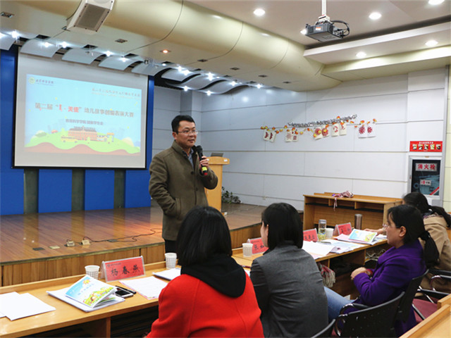与去年相比,今年的幼儿故事创编大赛又有了新的亮点,学院专门邀请了附幼的一线老师莅临现场担任评委并给予意见指导,并且增加了幼儿舞蹈和幼儿知识问答环节,极大地提升了比赛的专业性,同时丰富了比赛的趣味性。张如华在开幕词中指出:“学前教育专业的同学理论功底深厚,通过此次比赛可以更好地提升专业实践能力,使每位同学参与到活动中来,推动专业的进一步全面发展。”